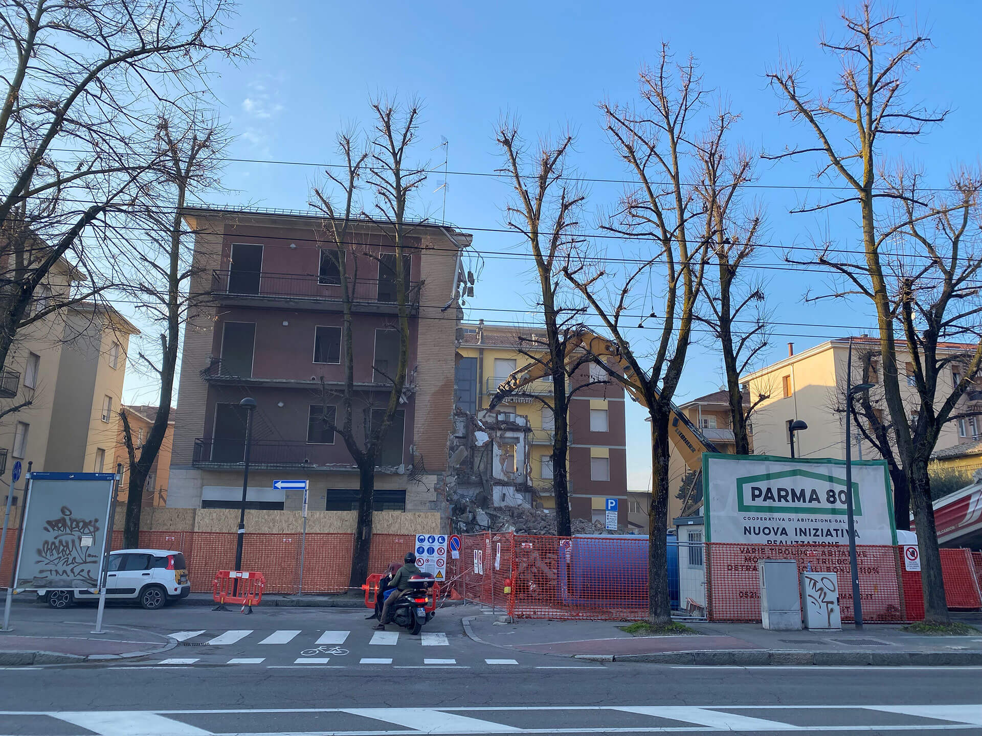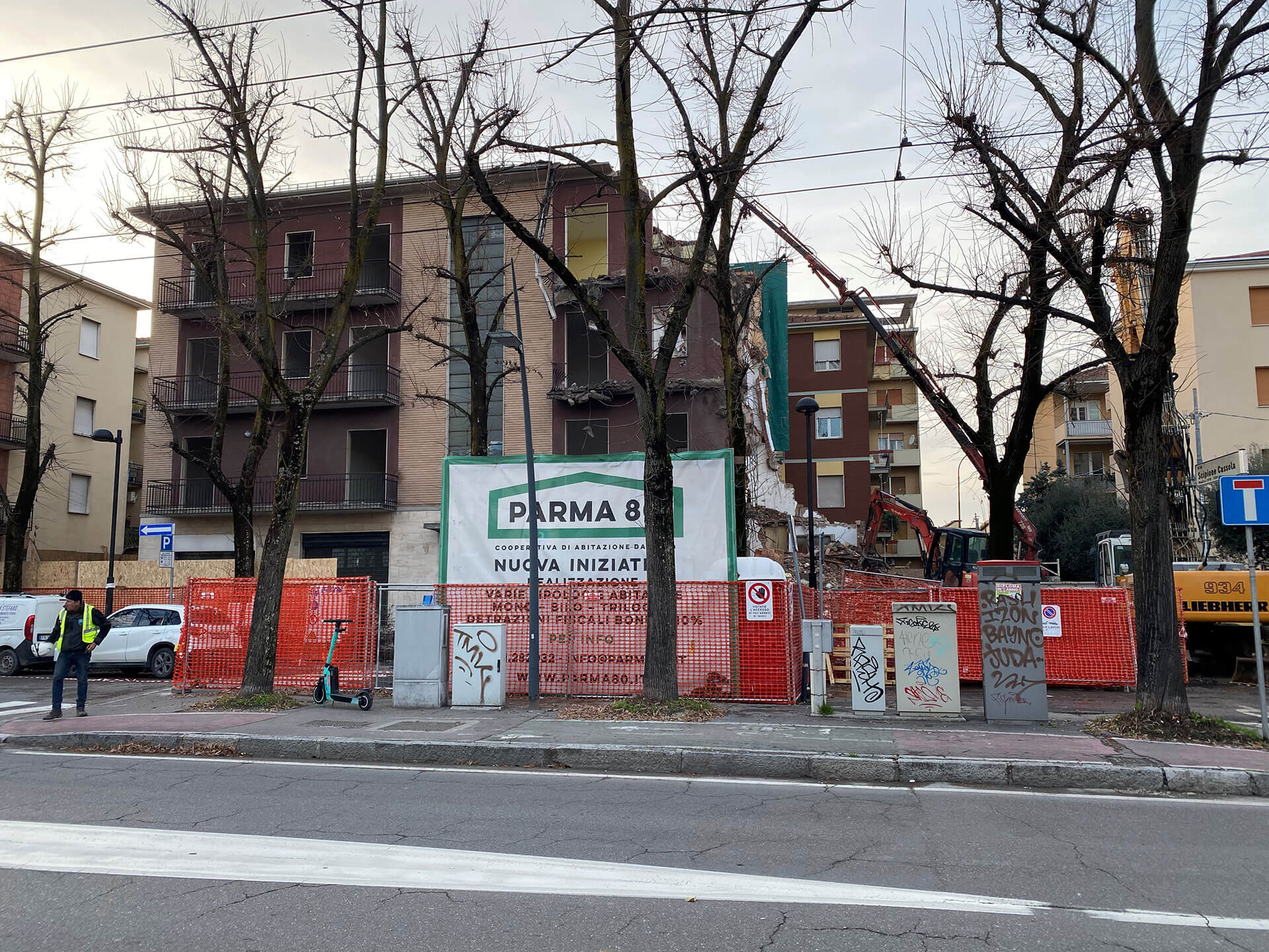 Intervento di integrale demolizione di una palazzina anni ’60 e totale ricostruzione con miglioramento delle prestazioni sismiche ed energetiche. Il nostro primo intervento di rigenerazione urbana e uno dei pochi a Parma.